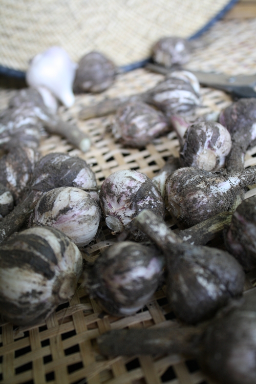 もっと強烈ににんにくの香りを楽しみたい方はすりおろしたものをバターかオリーブオイルに溶いて塗り、焼いて食べてくだせぃ。