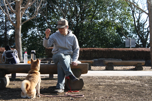 お昼はお弁当もって公園に来ました。